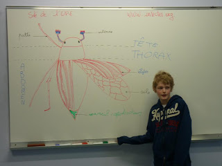 Aujourd'hui la séance a porté exclusivement sur les insectes, les élèves ont appris à les reconnaître, compris les différentes façons de grandir, leur rôle essentiel comme pollinisateurs, leur importance dans le recyclage des êtres vivants en décomposition, mais ils ont aussi pris conscience de records étonnant : le vol le plus rapide, le saut le plus haut ...